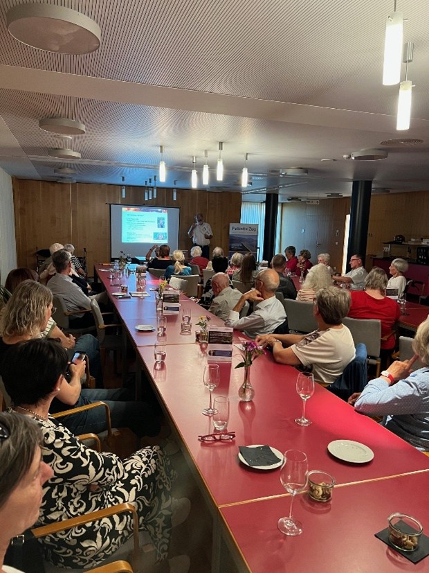 Die Zuhörenden wurden vorab mit einem Apéro begrüsst. Die Resonanz auf den Anlass war durchwegs sehr positiv. Wir danken dem Seniorenzentrum Mülimatt für die Gastfreundschaft und dem Referenten für seine Anregungen.